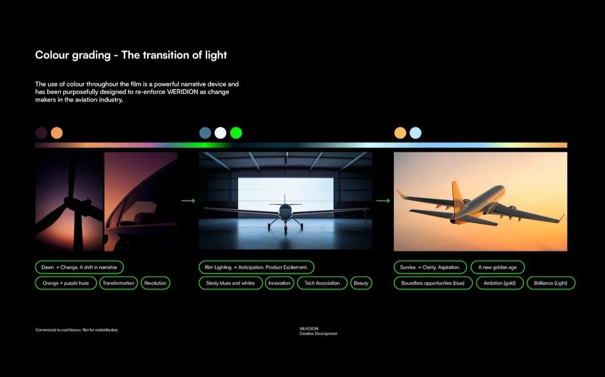 To ensure the film effectively communicated VÆRIDION's vision, we began with an in-depth discovery phase. We established a clear understanding of the aircraft’s Unique Selling Points (USPs), its position in the market, upcoming conferences/activations and opportunities to differentiate our film from competing marketing materials.